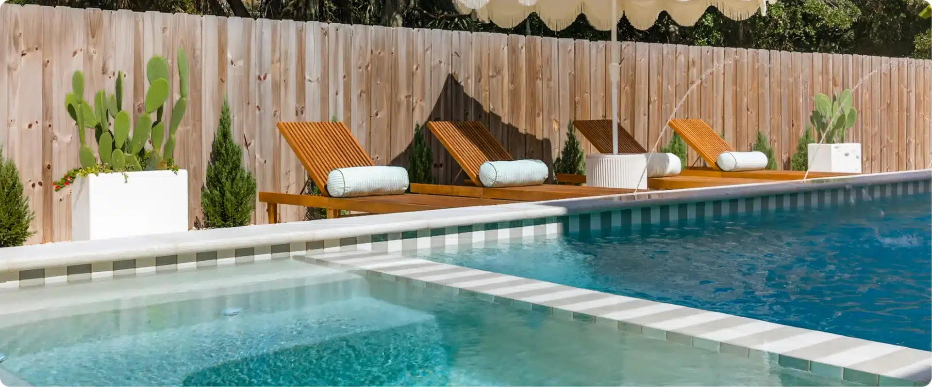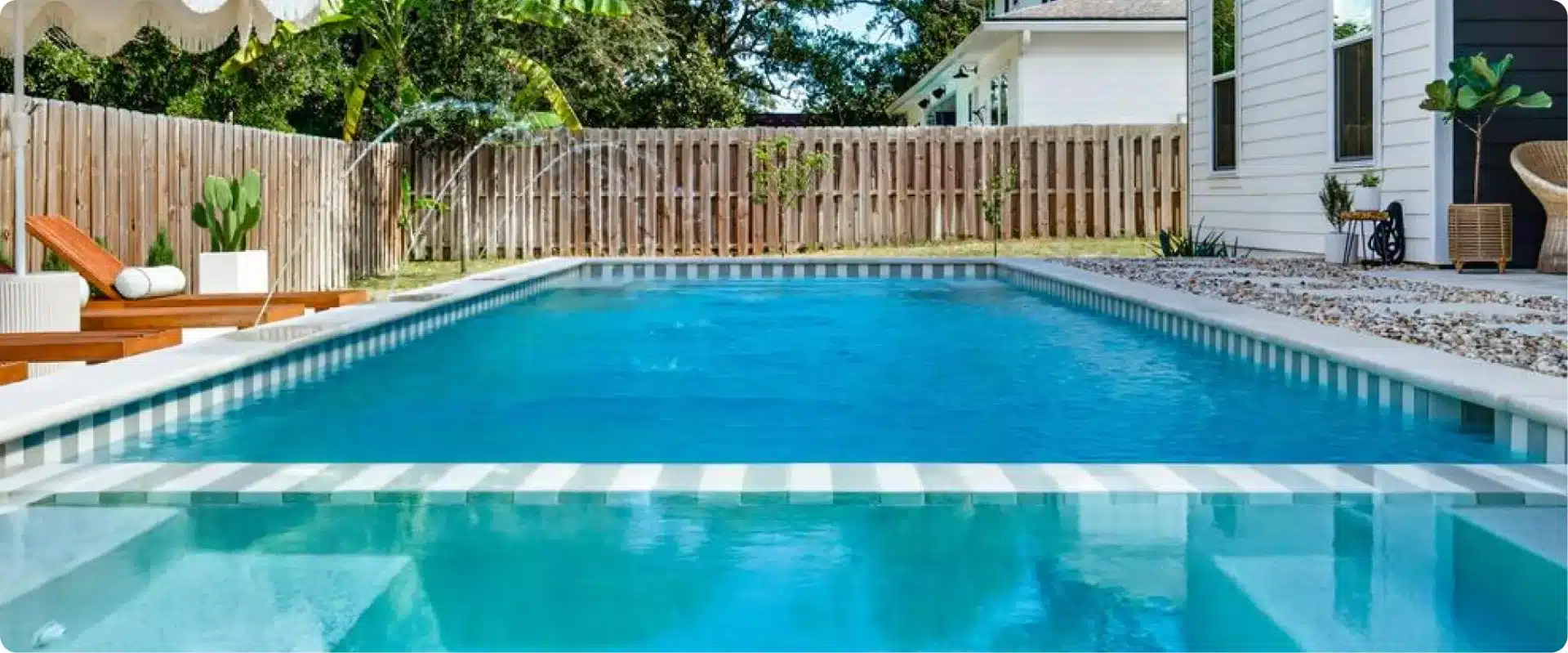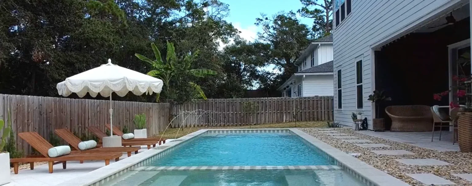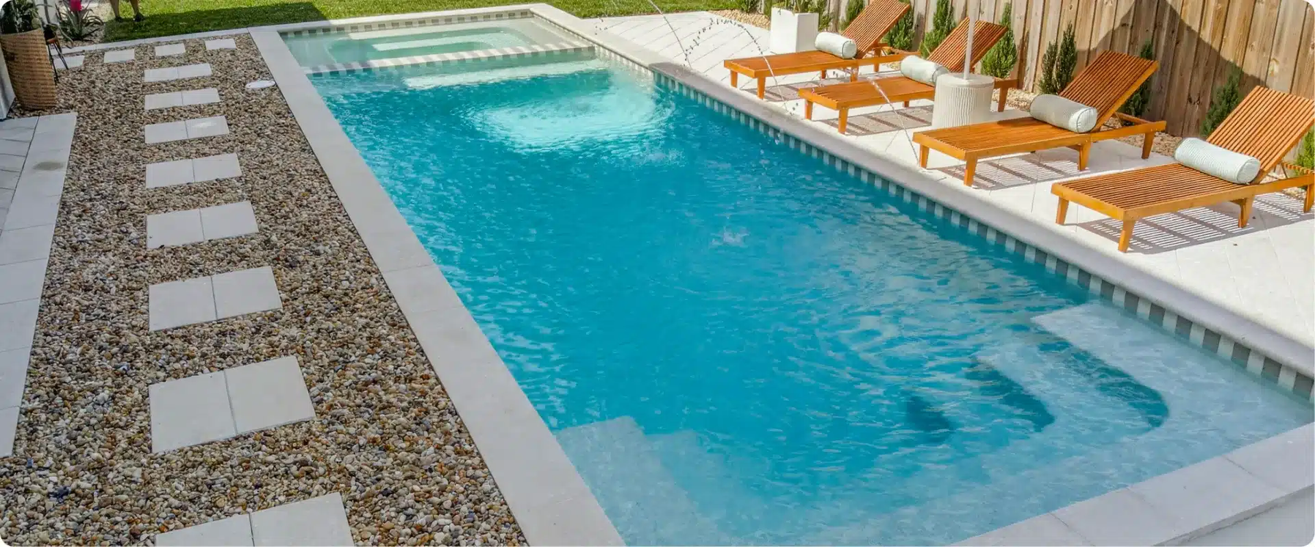 Built for a young family ready to turn their new house into a true retreat, this clean-lined coastal pool strikes a balance between modern simplicity and warm, welcoming details. The homeowner envisioned a custom rectangular pool softened by gentle curves—graceful steps that mirror the spa’s shape, creating a cohesive, flowing design.
