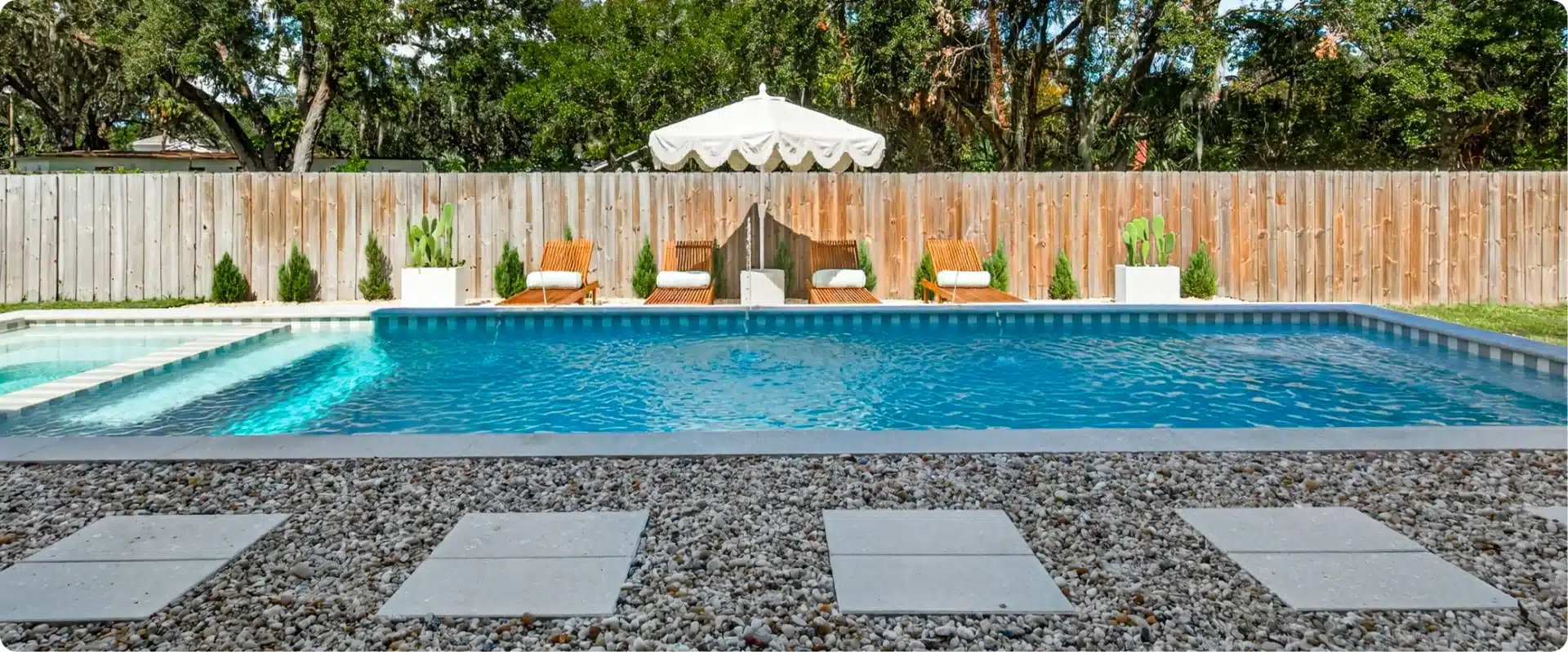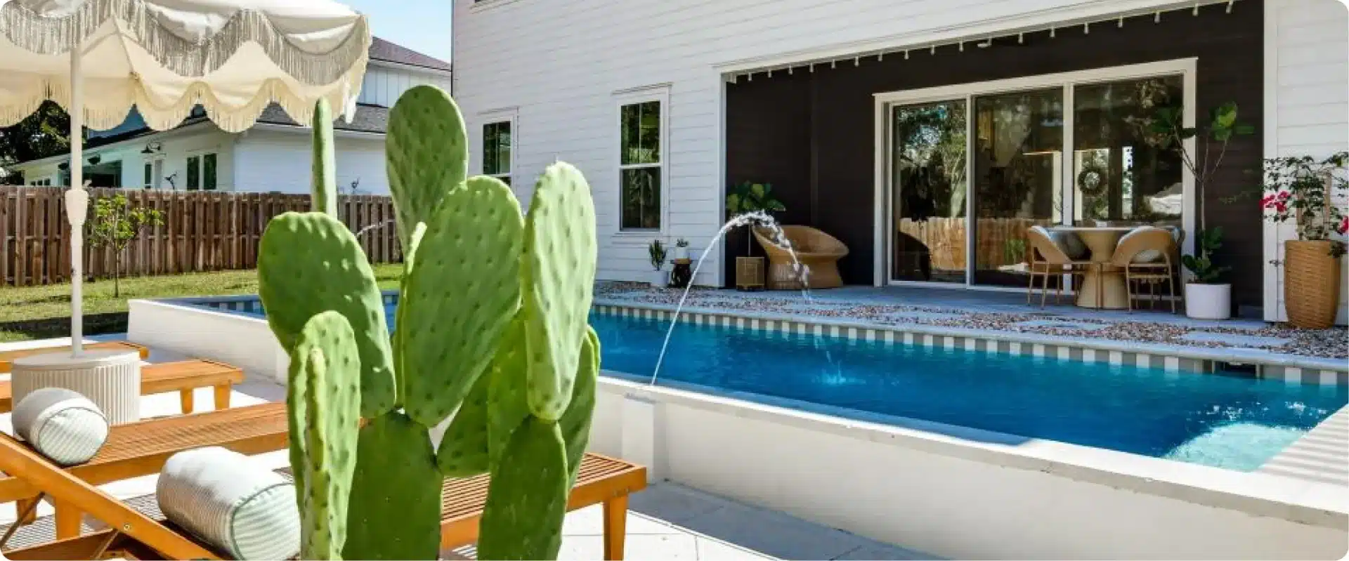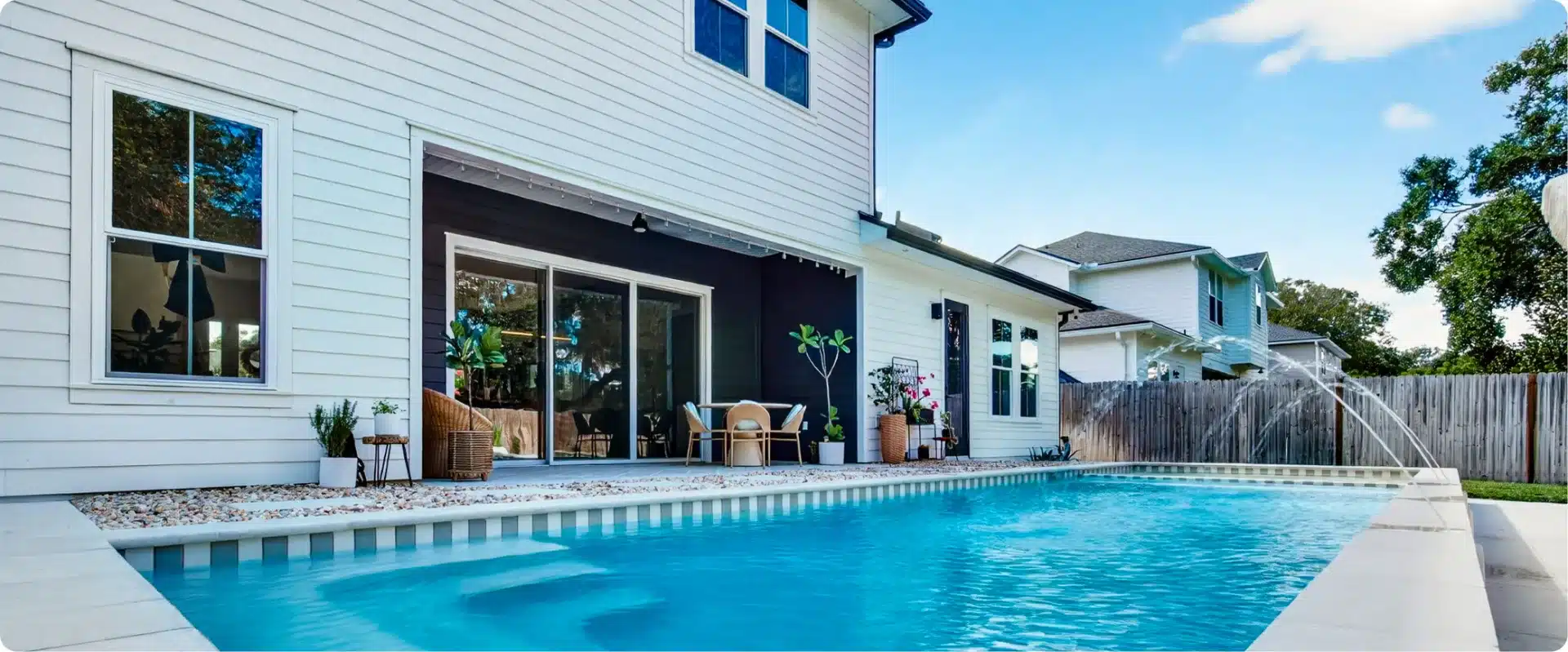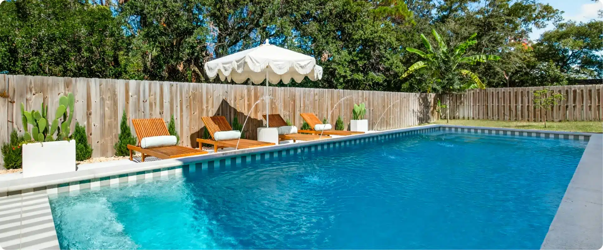 Built for a young family ready to turn their new house into a true retreat, this clean-lined coastal pool strikes a balance between modern simplicity and warm, welcoming details. The homeowner envisioned a custom rectangular pool softened by gentle curves—graceful steps that mirror the spa’s shape, creating a cohesive, flowing design.